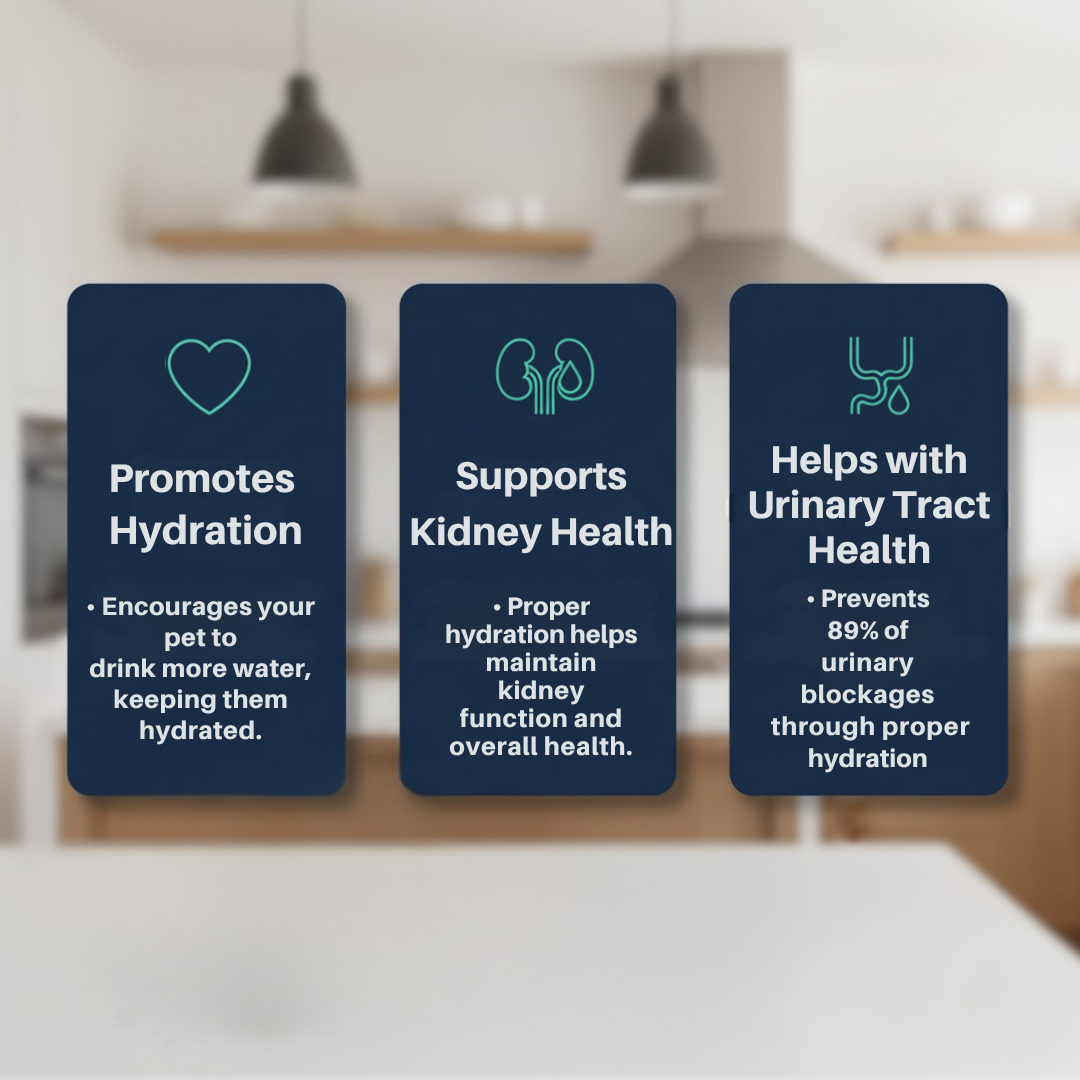 Clinical research shows that proper hydration can prevent up to eighty nine percent of urinary blockages in male cats. Loom Oasis makes that daily hydration simple and effortless.